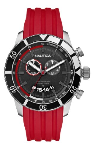 Sporty black resin strap with black dial and chronograph movement. Stainless steel case and luminous hands. Water resistant to 330 feet with screw down crown. Quartz movement Durable mineral crystal protects watch from scratches Case diameter: 46 mm Stainless-steel case Water-resistant to 330 feet (Nautica Men's N17584G NSR 08 Sporty Resin Watch Do not Miss!! Sporty black resin strap with black dial and chronograph movement. Stainless steel case and luminous hands. Water resistant to 330 feet with screw down crown. Quartz movement Durable mineral crystal protects watch from scratches Case diameter: 46 mm Stainless-steel case Water-resistant to 330 feet (... Nautica Men's N17584G NSR 08 Sporty Resin Watch