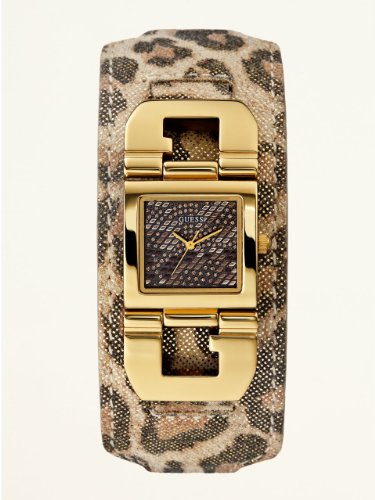 This glittering timepiece keeps you on time from one social affair to the next. Team it with your party-ready best for eye-catching style. ? Analog function ? Watch dimensions in mm: 25/24/10 ? Polished gold-tone case ? Gold-tone dial with leopard-print and glitz accents ? Gold-tone, animal-print anGUESS Iconic Animal Cuff Do not Miss!! This glittering timepiece keeps you on time from one social affair to the next. Team it with your party-ready best for eye-catching style. ? Analog function ? Watch dimensions in mm: 25/24/10 ? Polished gold-tone case ? Gold-tone dial with leopard-print and glitz accents ? Gold-tone, animal-print an... GUESS Iconic Animal Cuff