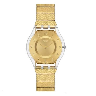 Cheapest Price Swatch Skin Warm Glow Steel Bracelet Gold Dial Women's watch #SFK355G